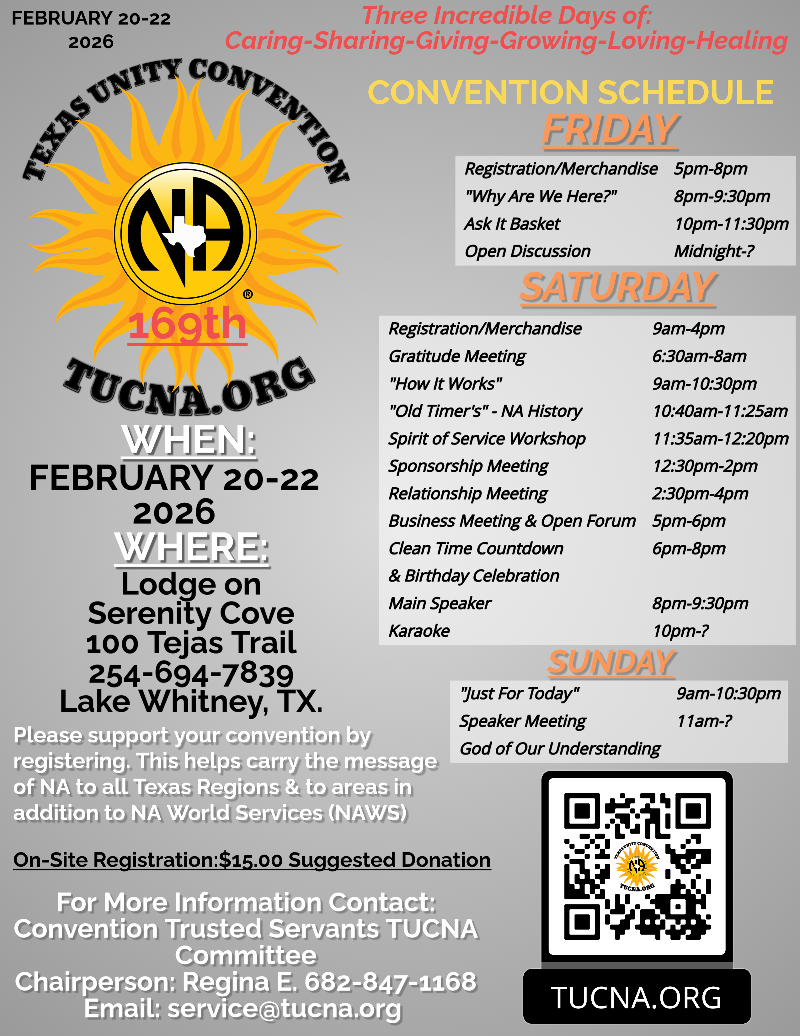 TUCNA is a quarterly convention of Narcotics Anonymous, which is a special blessing, because most NA conventions occur annually.
