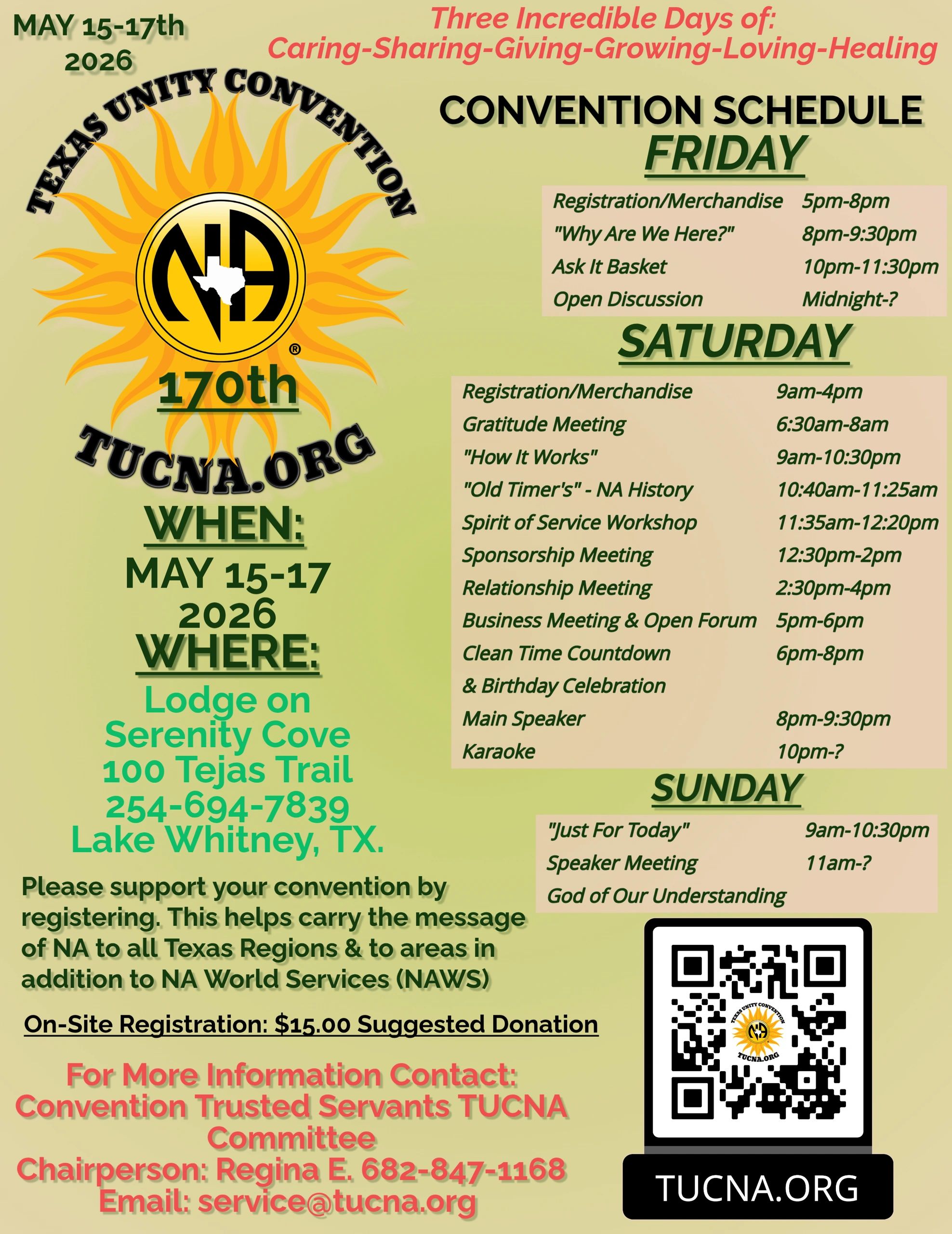 If your clean date falls between our last Convention May and this August, then you are celebrating a BIRTHDAY! Please be sure to mention this at Registration so that you can be recognized during our Birthday Celebration!
